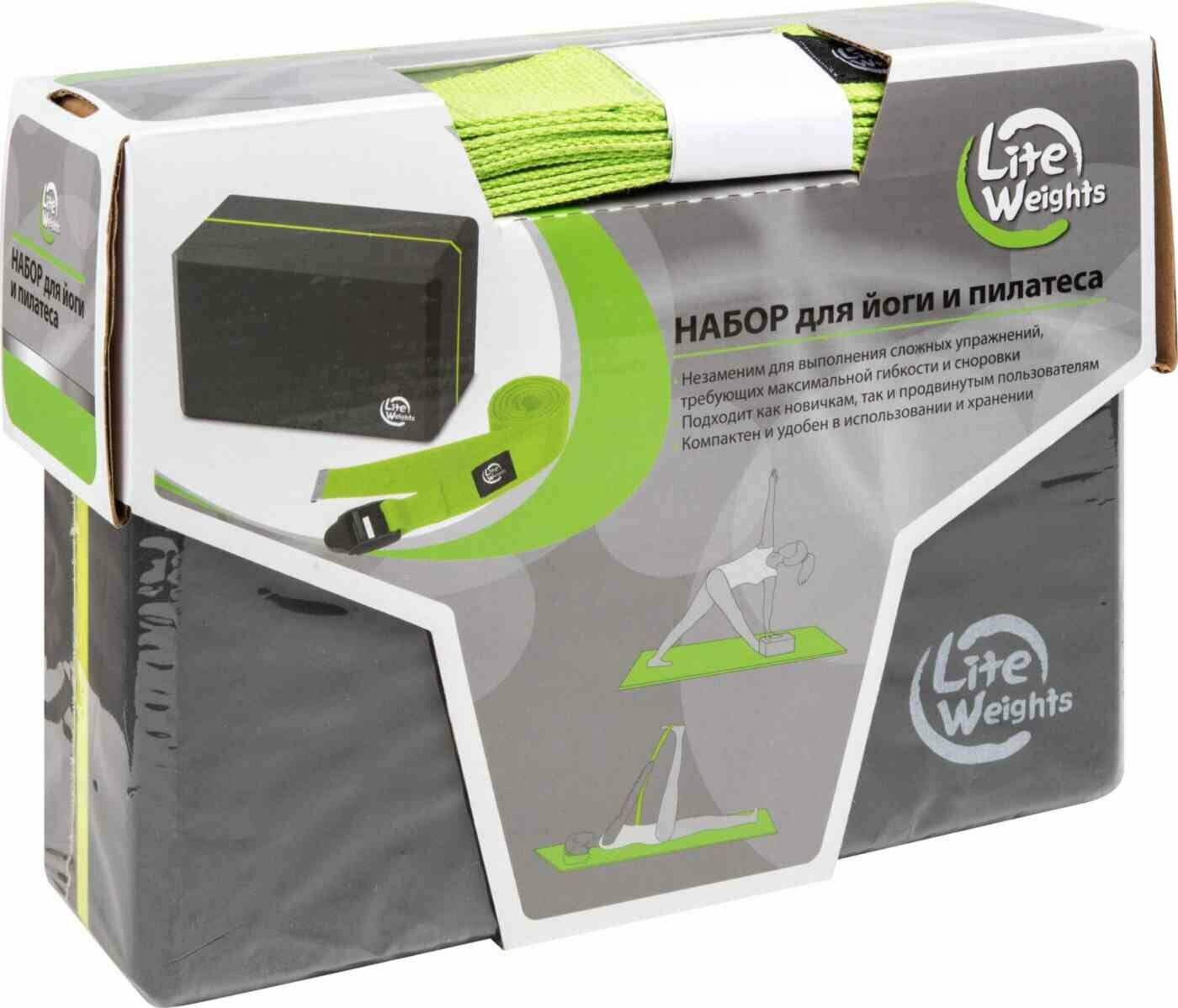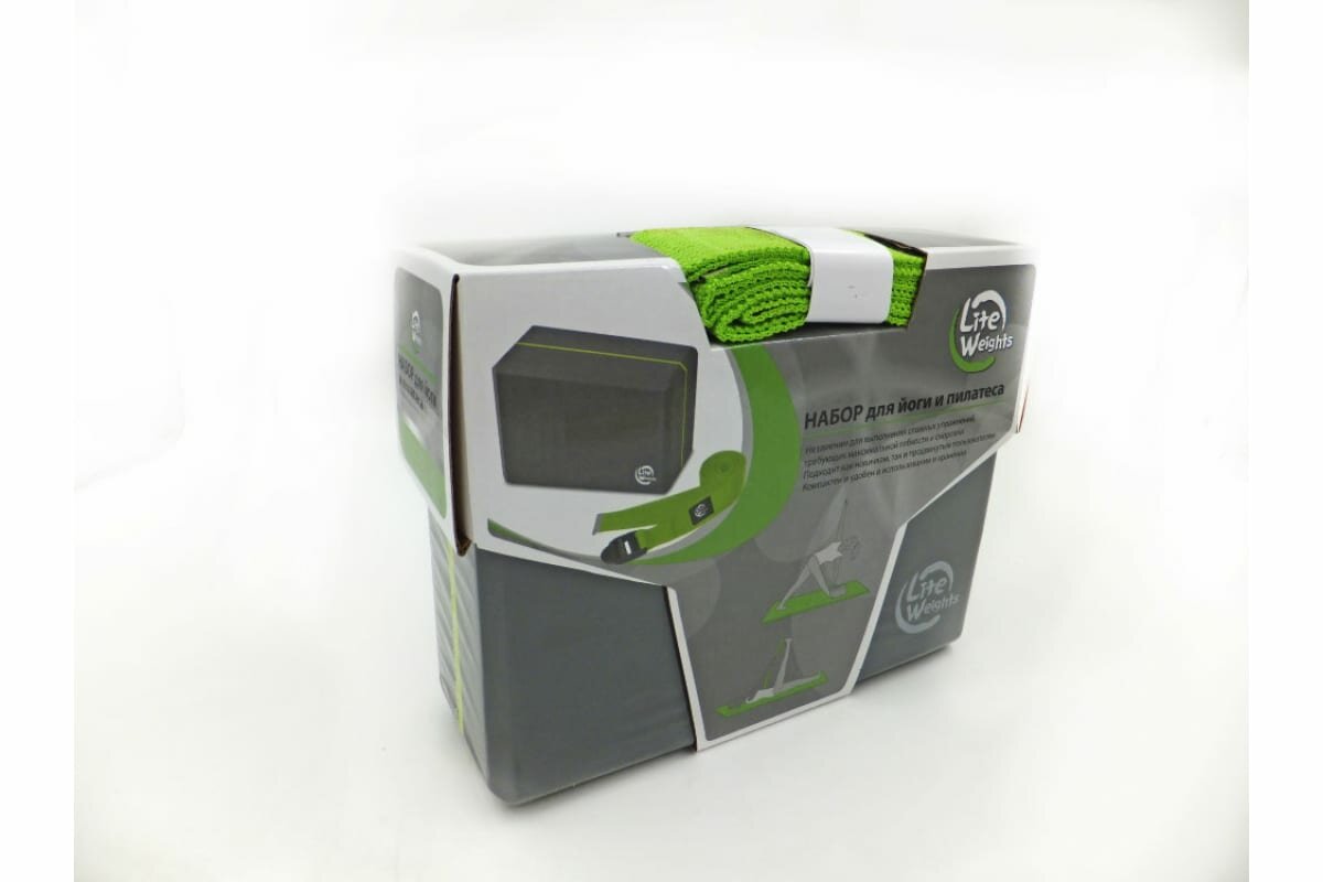 Набор для йоги и пилатеса Lite Weights 5490lw (блок, ремешок), серый/салатовый