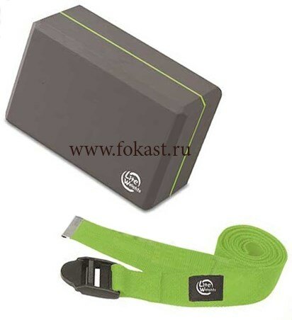 Набор для йоги и пилатеса 5490LW (блок, ремешок), серый/салатовый интересное: