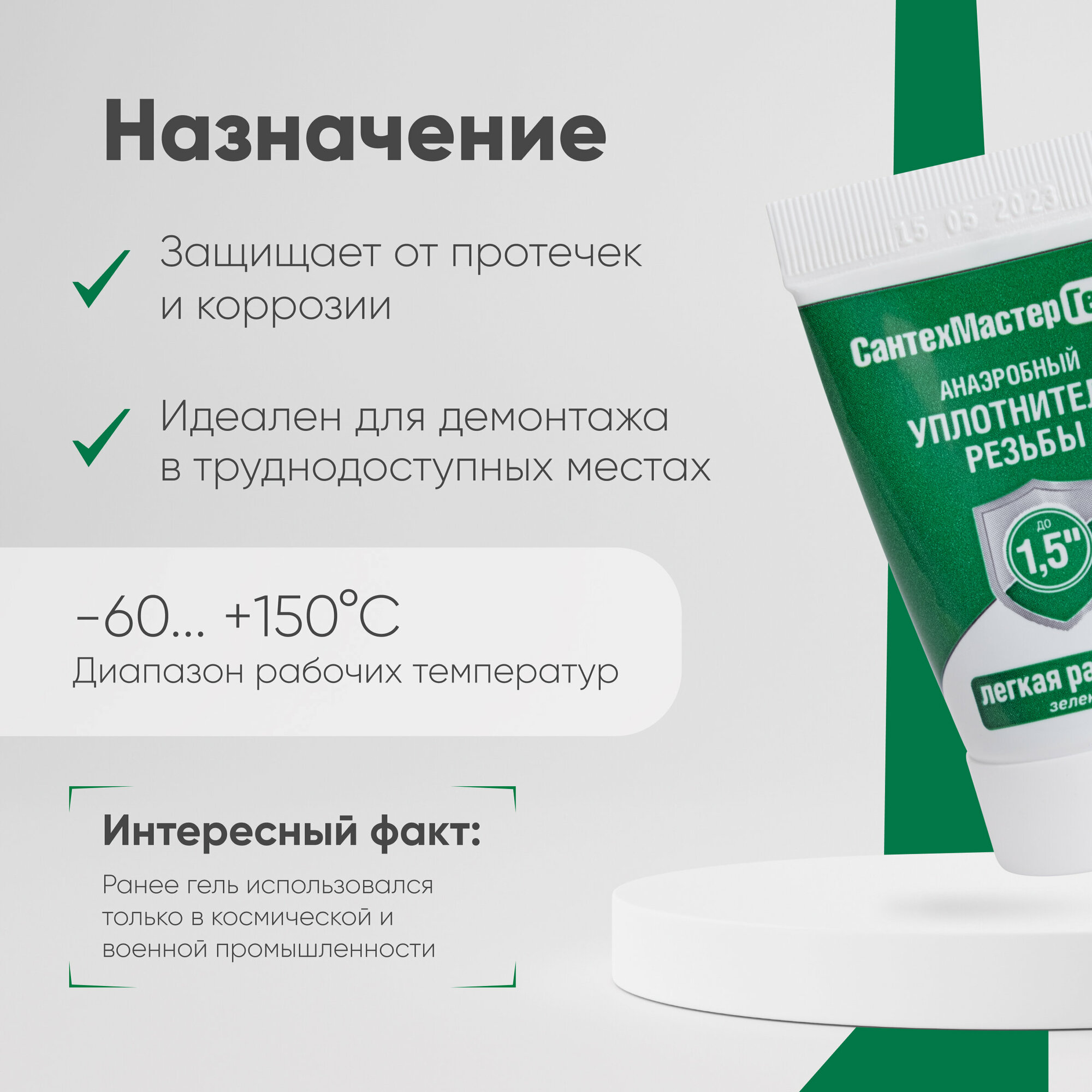 Анаэробный гель СантехМастер уплотнитель, герметик зеленый 35 гр