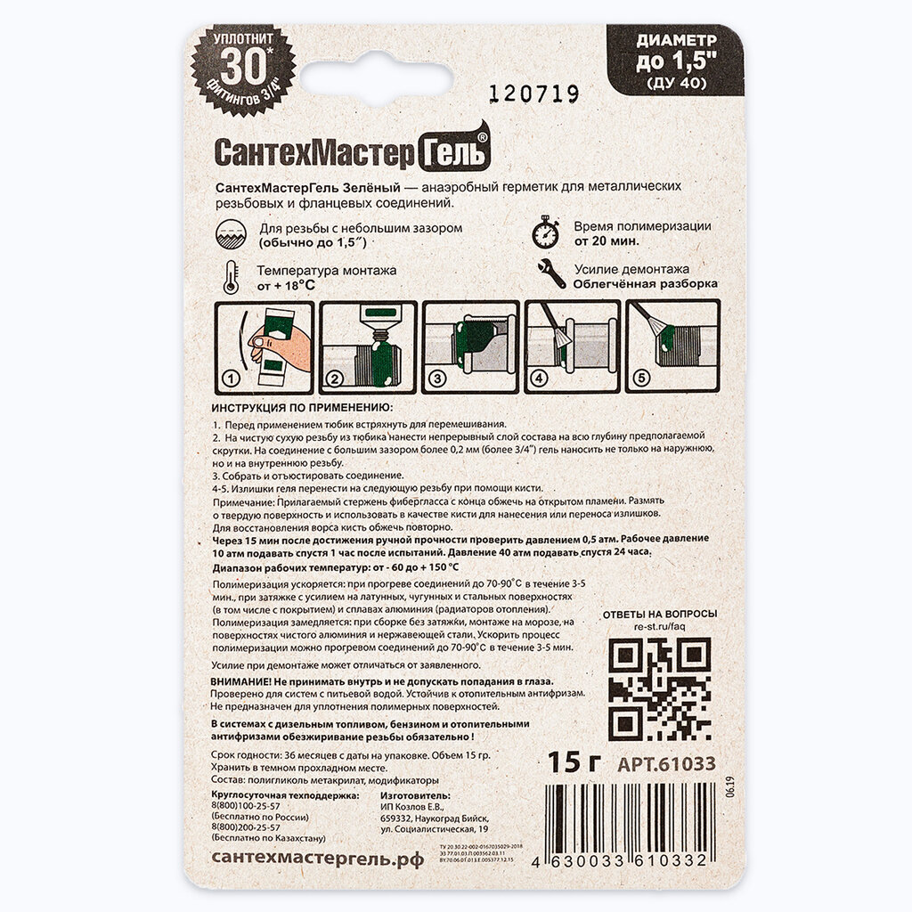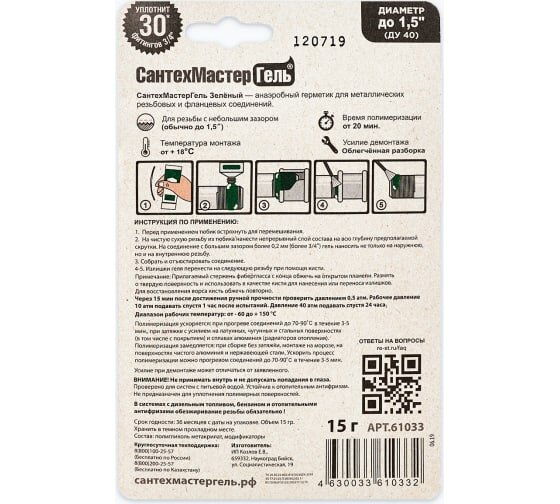 Гель-герметик «СантехмастерГель» зеленый легкая разборка 15г. блистер интересное: