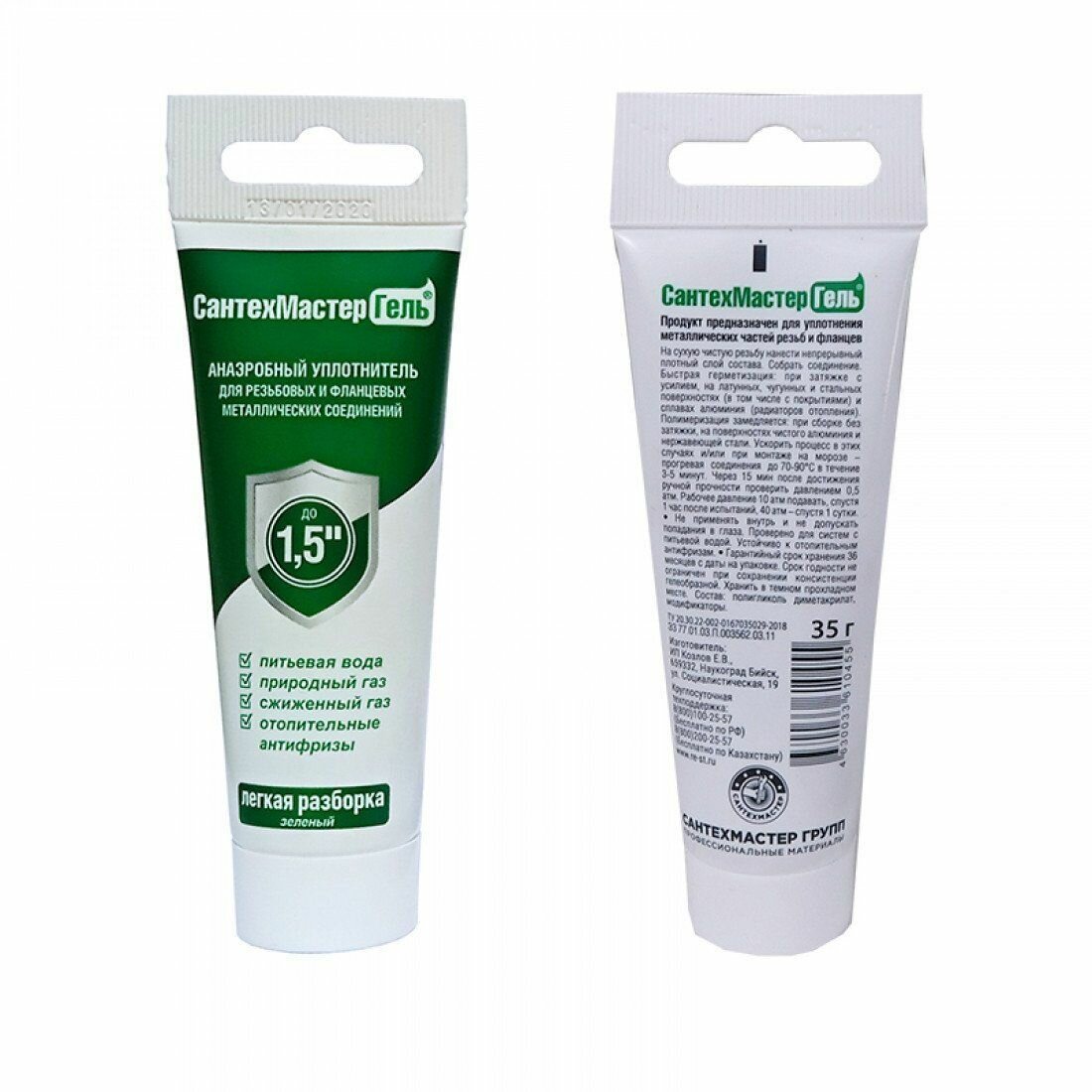 Анаэробный герметик для резьбы Сантехмастер гель зеленый 15 г, блистер