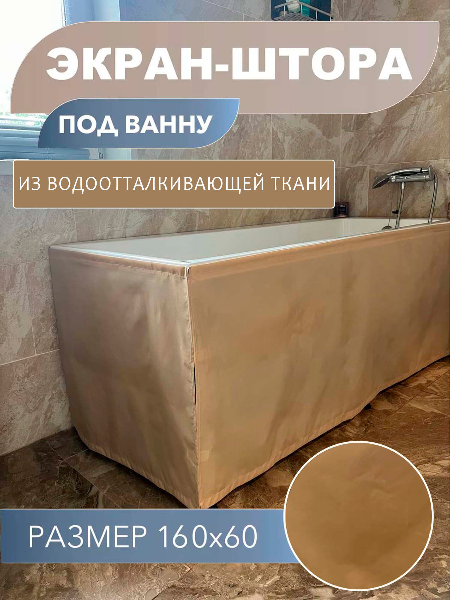 Купить Экран под ванну из водоотталкивающей ткани, бежевый, размер 160*60 см, крепление не требует монтажа