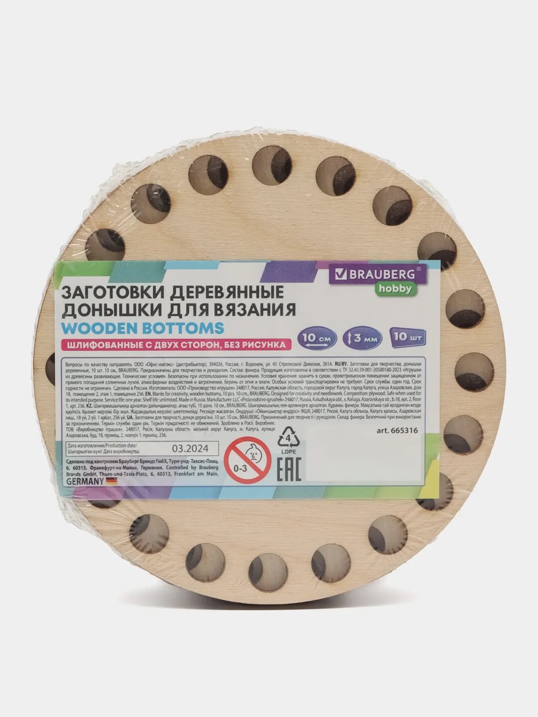 Донышки деревянные для вязания Brauberg Hobby, круглые, 10шт, диаметр 10см (665316), 48 уп.
