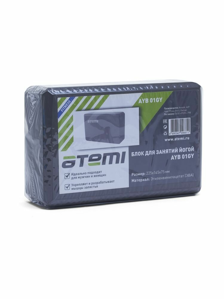 Блок для йоги ATEMI , AYB01GY, 225х145х75, серый