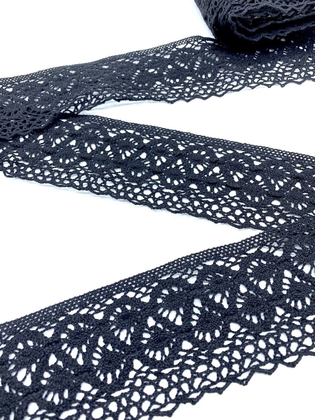 Тесьма вязаная KRUZHEVO 50мм TBY-6368 цв.03 черный уп.10м