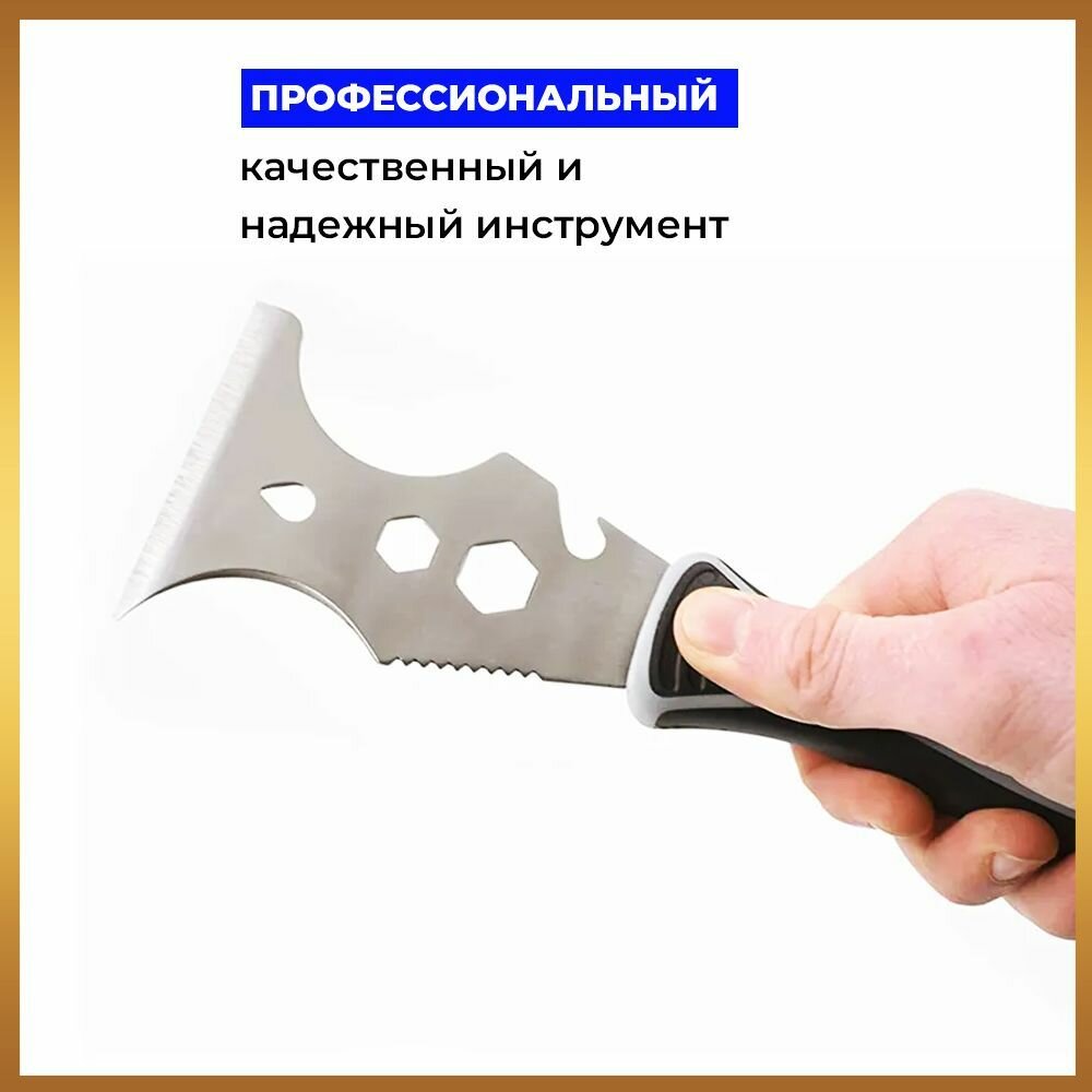 Шпатель-скребок строительный многофункциональный 12 в 1, нерж. сталь, наконечник-молоток