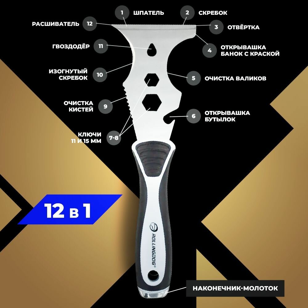 Шпатель-скребок многофункциональный 12 в 1 Rollingdog 50019 (шт) интересное: