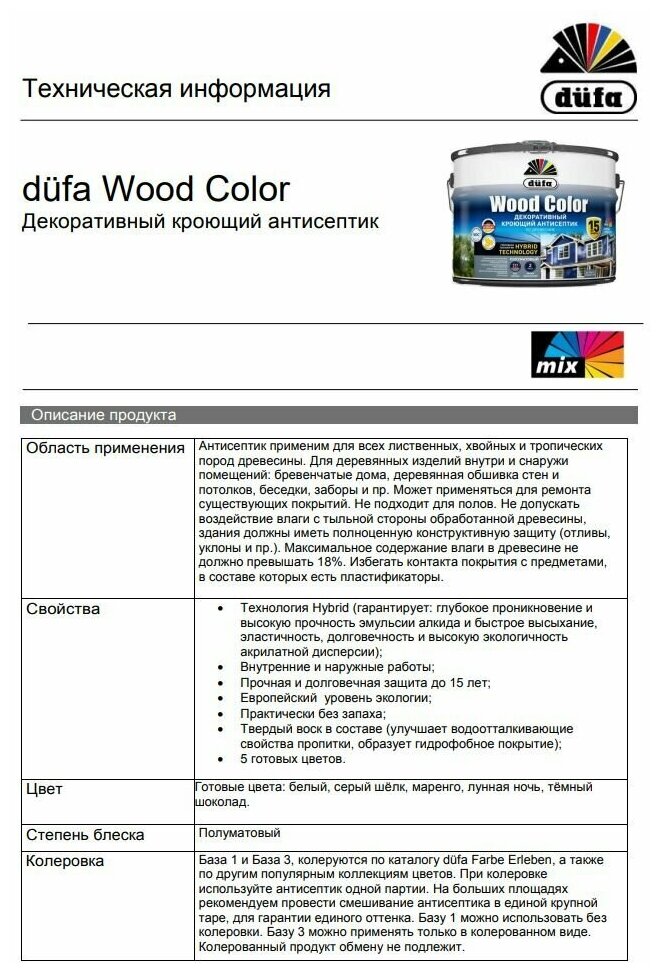 СохранитьDufa Wood Color Кроющий антисептик для деревянных фасадов (база 3, 2,2л) интересное: