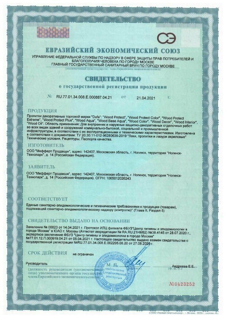 Dufa Кроющий антисептик WOOD COLOR бесцветный, база С 0,81 л