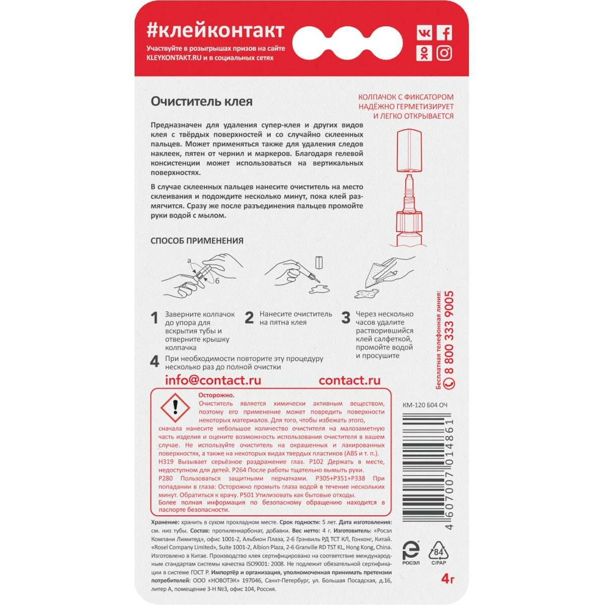 Очиститель клея Контакт 4 мл, в блистере (КА200-Б04 ОЧ BL-1)