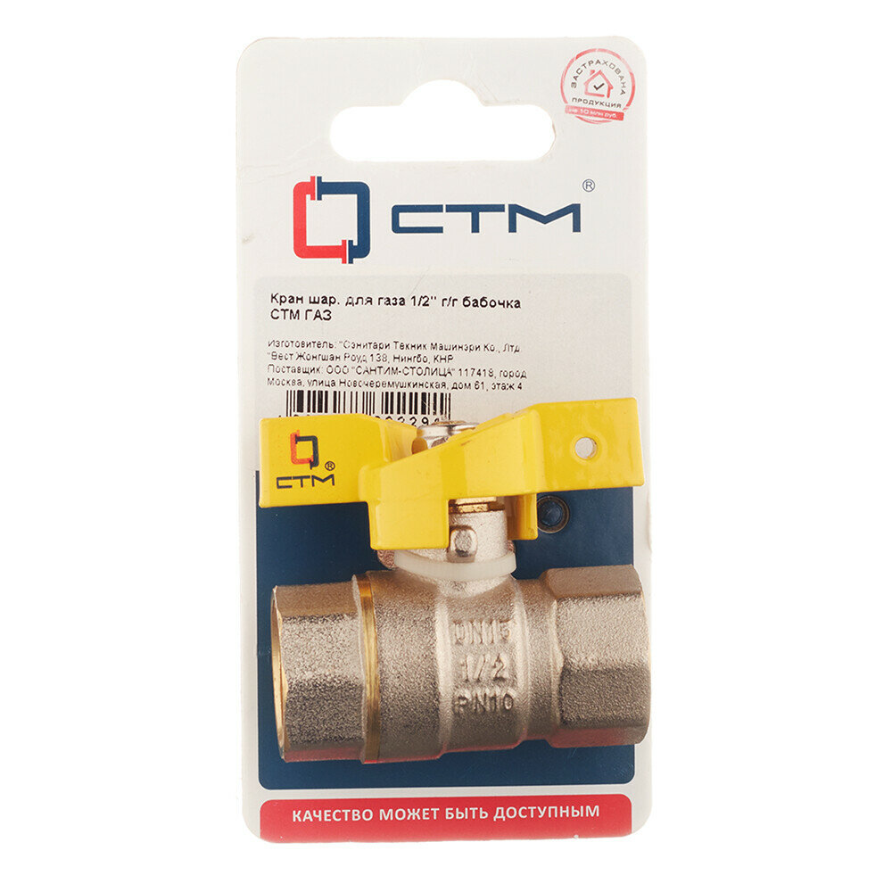 СТМ Кран шаровой газовый "СТМ" ГАЗ, PN10, внутренняя/внутренняя резьба 1/2", бабочка