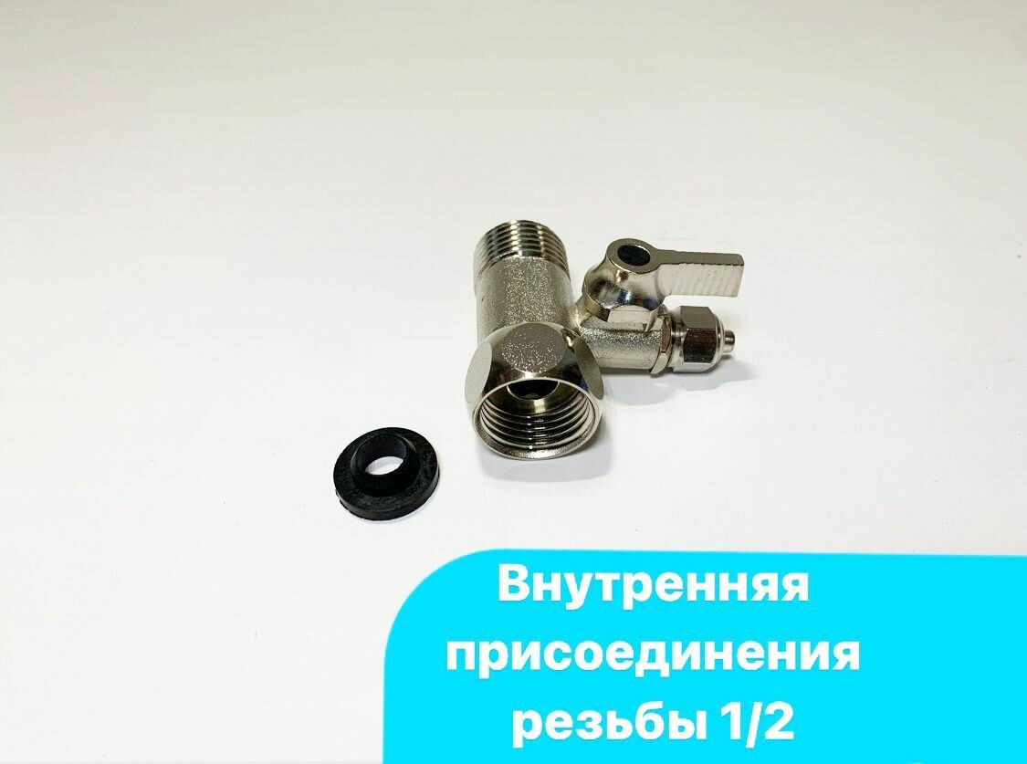 Кран тройник Аквабрайт КБП-14-12 для подключения питьевых систем к водоснабжению, 1/2" г/ш* к шлангу 1/4