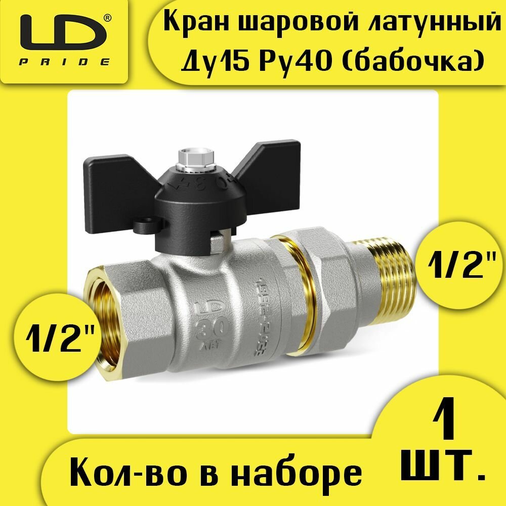 Кран шаровой латунный LD Pride 47.15.В-ГШ.Б Ду 15 Ру 40 бабочка, арт. LD 47.306.15