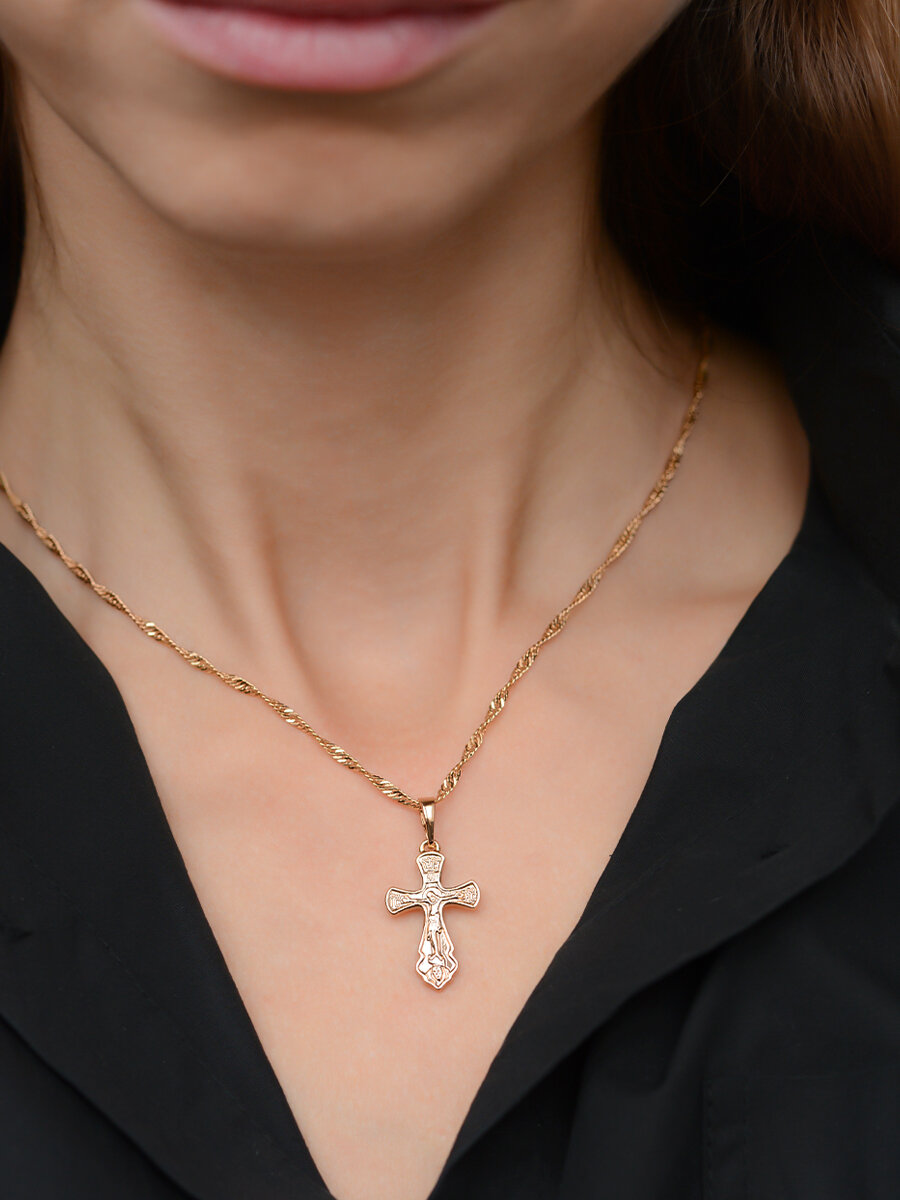 Православный нательный крестик без камней позолоченный, подвеска на шею. Ювелирная бижутерия интересное: