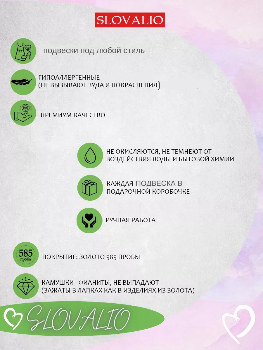 Подвеска SLOVALIO, кристалл, фианит, золотистый