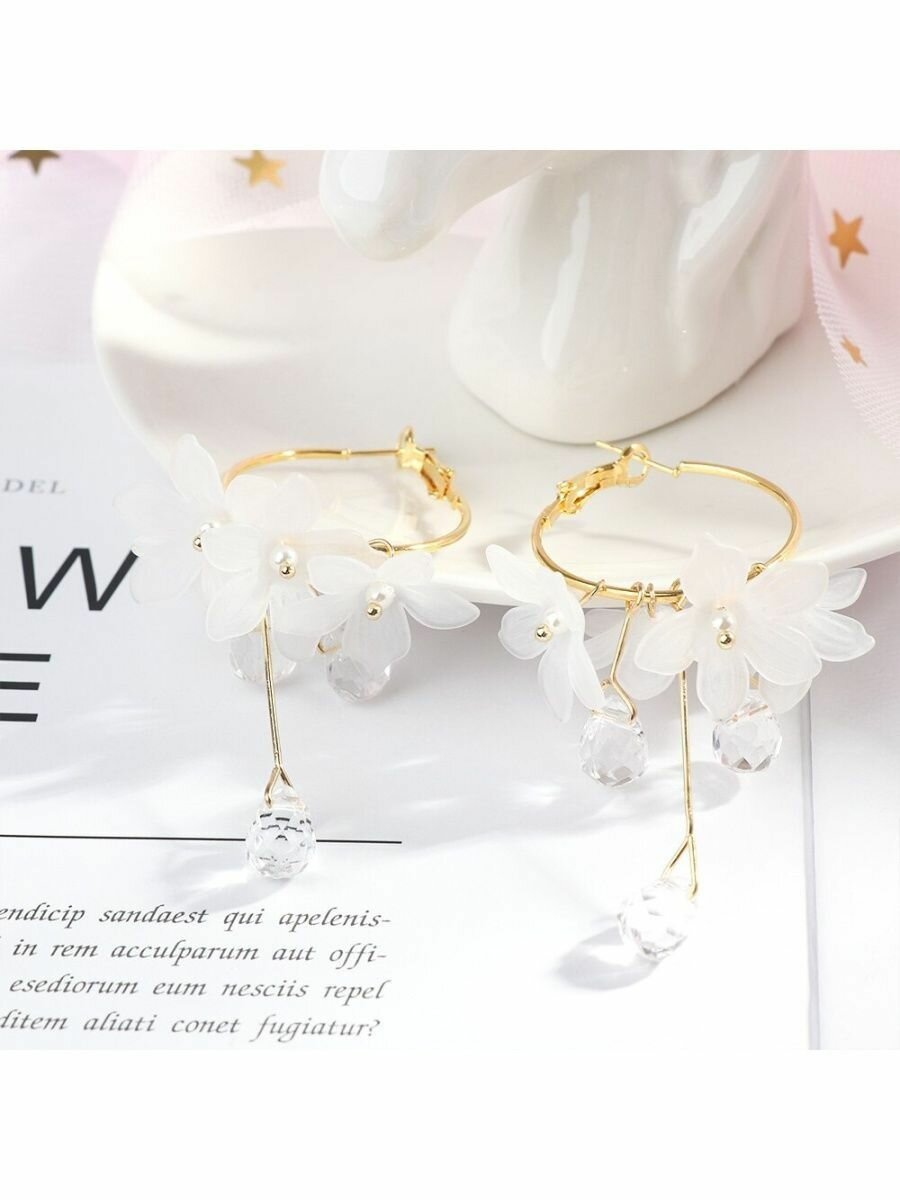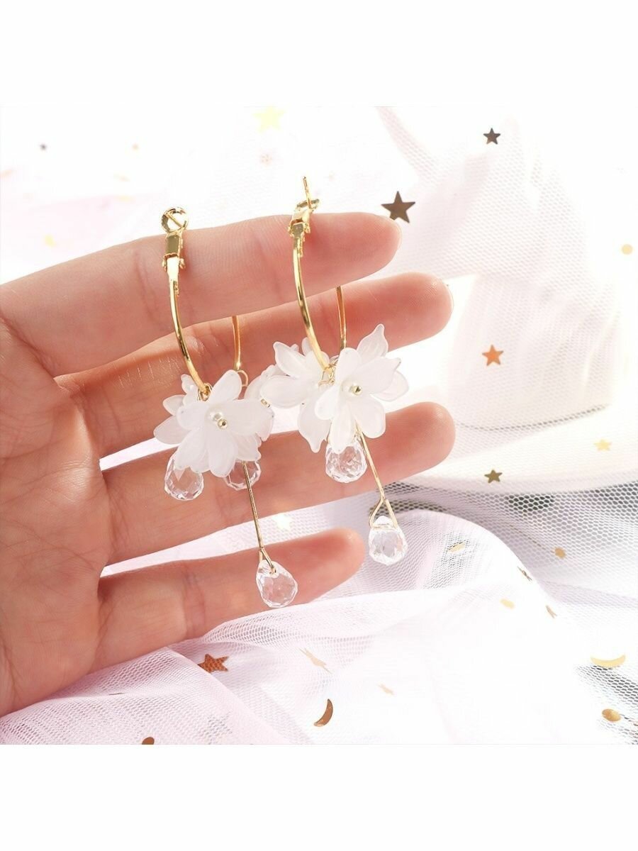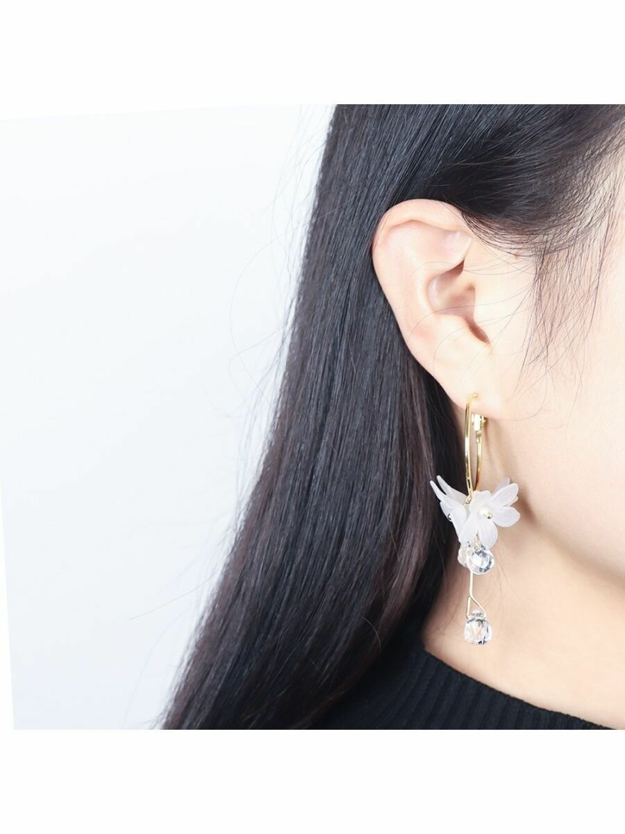 Серьги корея цветы со стразами, длинные висячие асимметрия