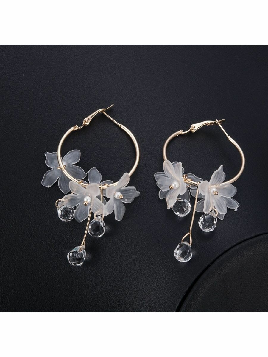 Серьги цветочки и бусины длинные висячие корейские