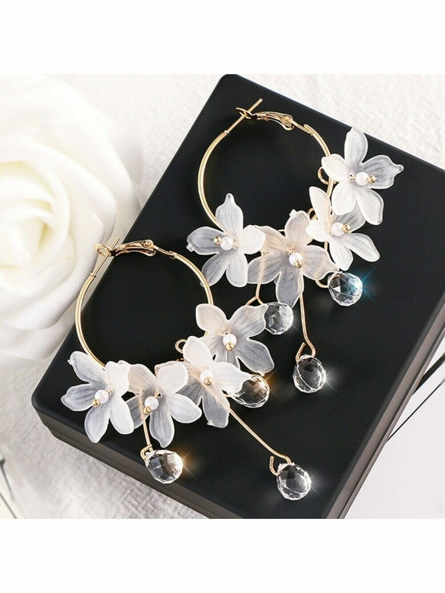 Серьги цветы со стразами, длинные висячие висюльки