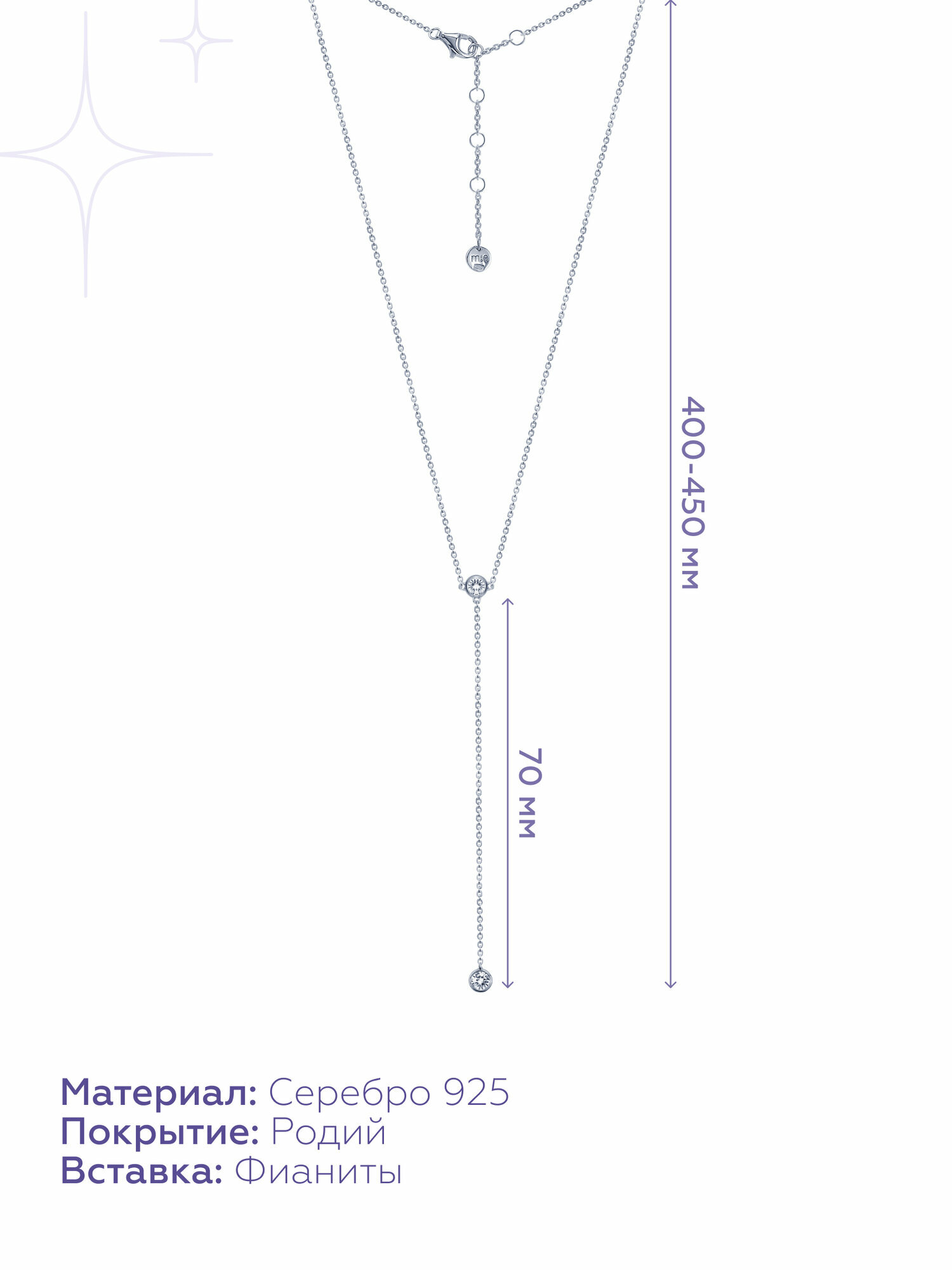 СохранитьКолье MIESTILO на шею серебро 925 галстук с фианитами интересное:
