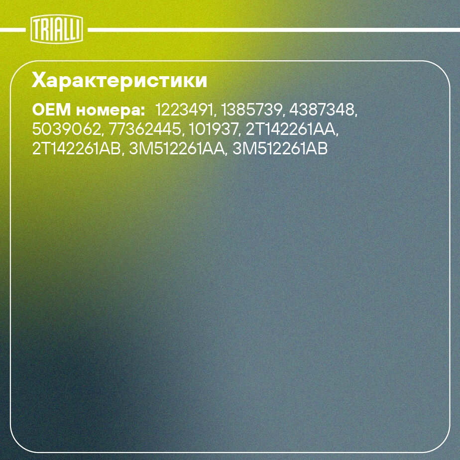 | Соответствующие коды OE | Ford 1223491, 1385739, 4387348, 5039062 |