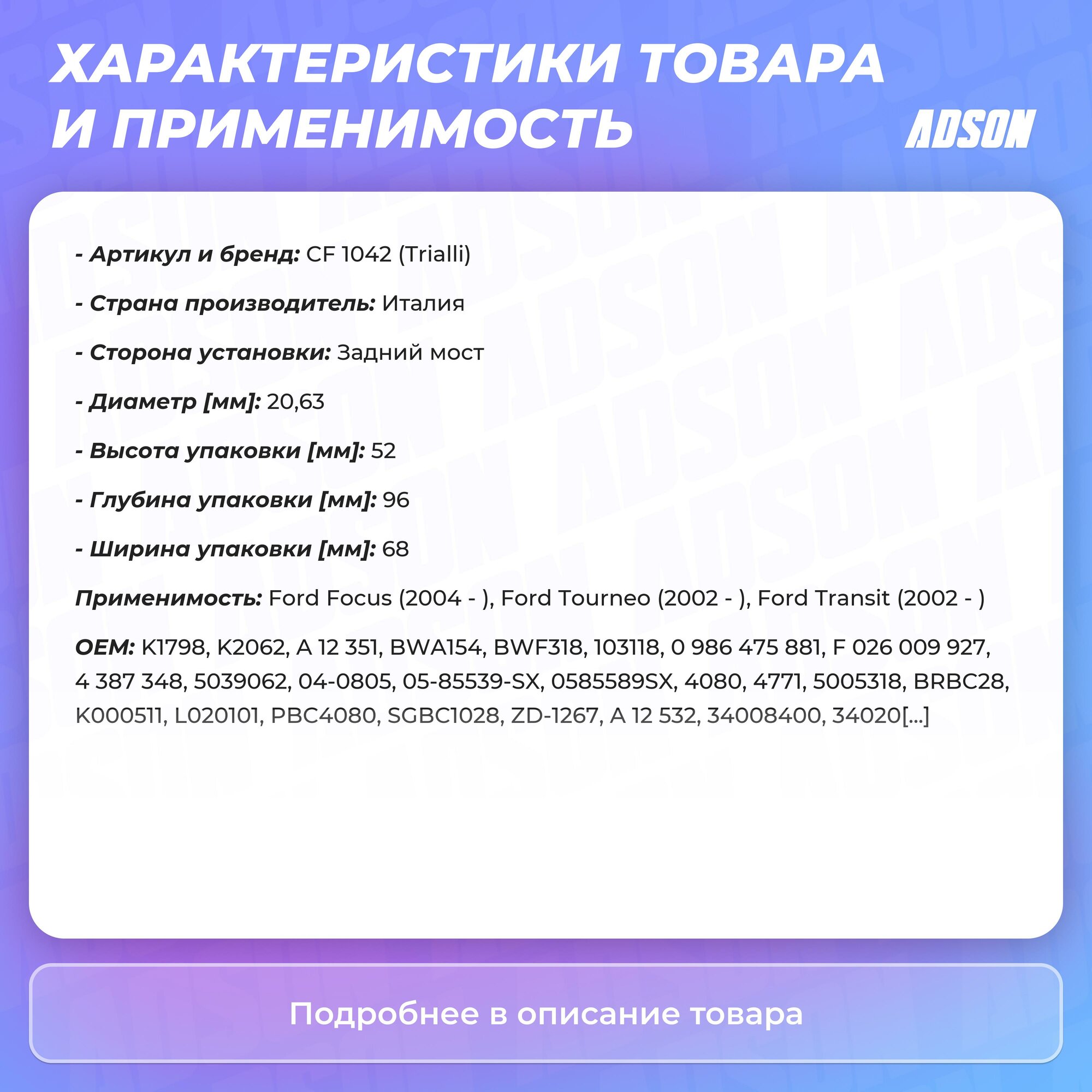Cf 1042_Цилиндр Тормозной! Задний Ford Focus Ii 05> Trialli арт. CF 1042 интересное: