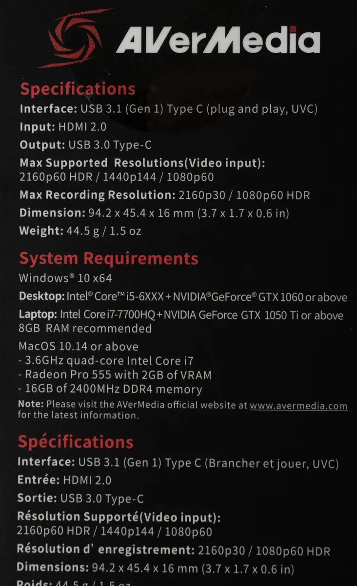 Карта видеозахвата AVerMedia ExtremeCap 4K BU113, внешний интересное: