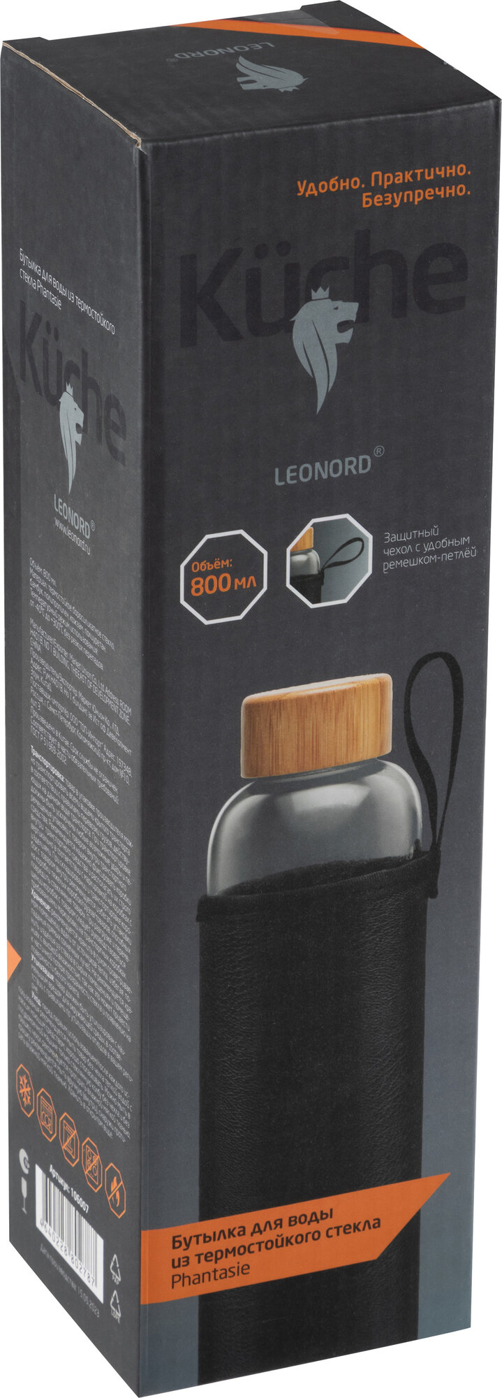 Leonord Бутылка для воды, phantasie,объем 800 мл, из термостойкого стекла, в чехле, крышка из бамбук . интересное: