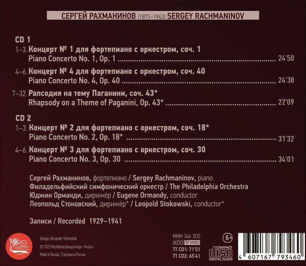 Рахманинов играет Рахманинова. Четыре концерта для фортепиано с оркестром. Рапсодия на тему Паганини (2 CD) (2022 год, СД диск, CD Box)