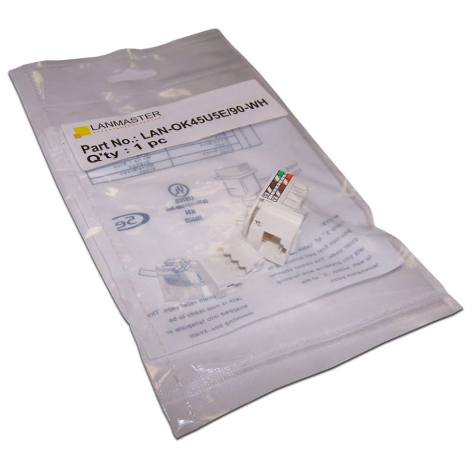 Модуль Keystone Lanmaster , RJ45, кат.5E, UTP, 90 градусов, со шторкой, белый (LAN-OK45U5E/90-WH)