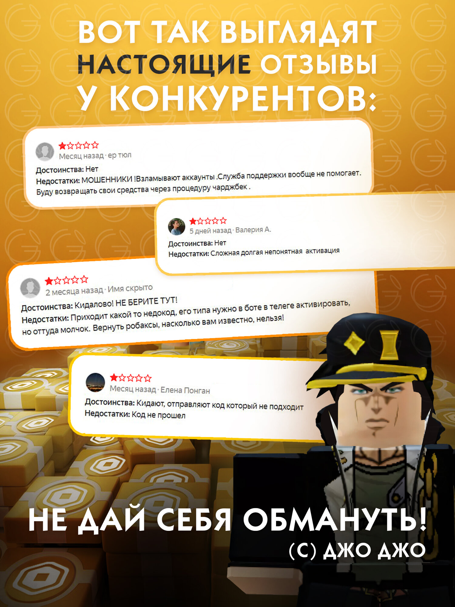 Ниже Вы можете прочитать отзывы на Roblox карта пополнение баланса 400 Robux, робукс, ознакомится с подробными характеристиками, посмотреть интересные обзоры и фотографии на Roblox карта пополнение баланса 400 Robux, робукс.