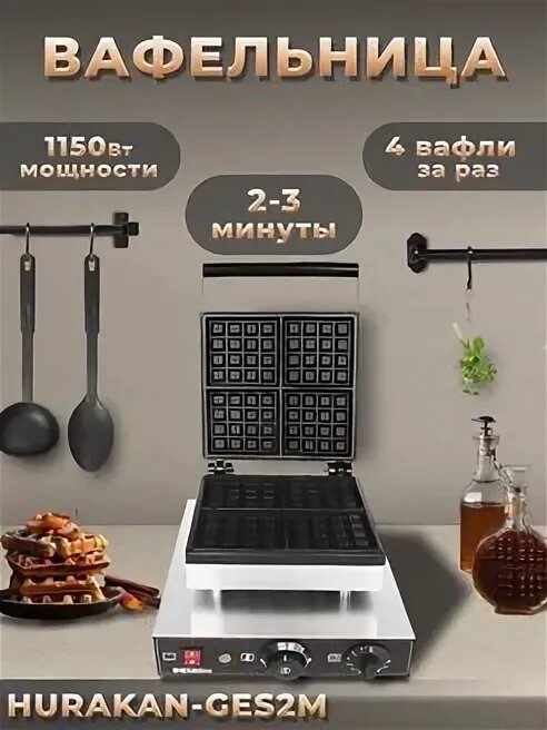 Вафельница Hurakan HKN-GES2M HKN-GES2M , 4 формы с антипригарным покрытием, серая интересное: