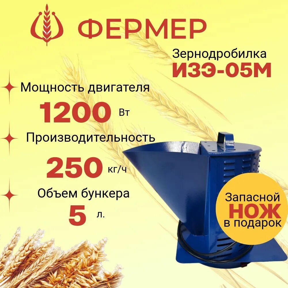 Зернодробилка фермер ИЗЭ-05М 250кг/ч + В подарок НОЖ, корморезка, дробилка для зерна интересное: