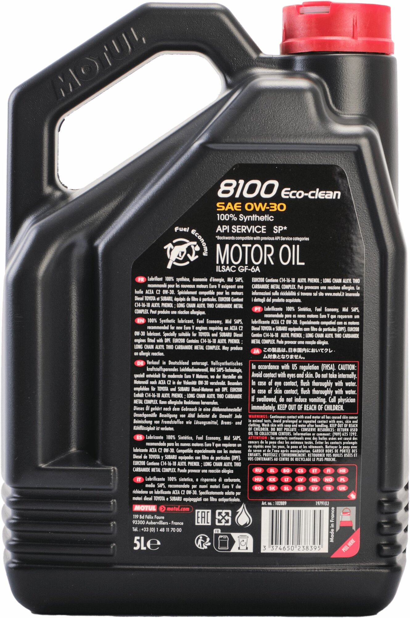 MOTUL 102889 Масло моторное 0W30 MOTUL 5л синтетика 8100 ECO-CLEAN ACEA C2 1шт