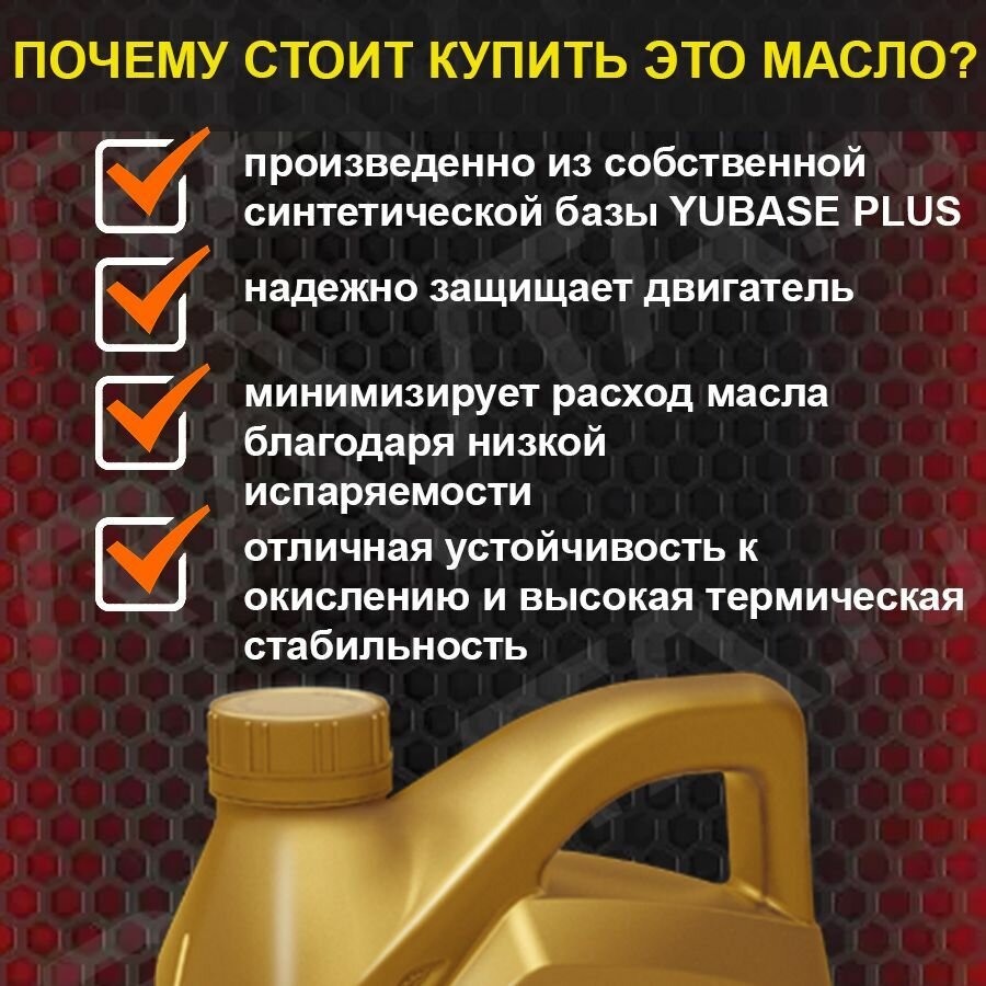 | Плюсы: | давно перешёл на него- цена- качество на уровне, мотор работает хорошо, зимой проблем нет, вязкость не теряет, угар минимален( не доливаю от замены до замены) |