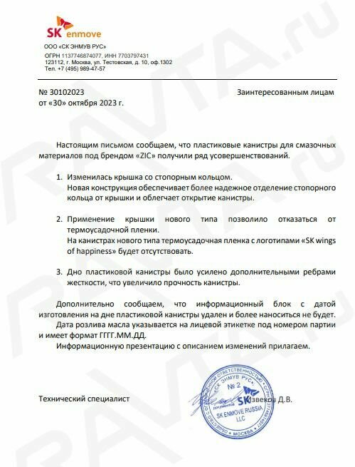 | Минусы: | Масло протекло не плотно закрытая канисра. 4л. |