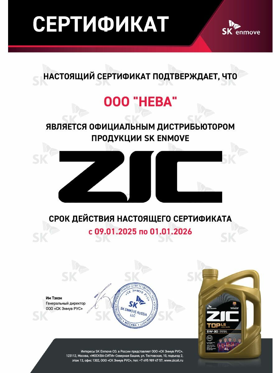 Масло синтетическое ZIC Zero 30 (1 л; 0w-30; SN) SK Lubricants 132676 .