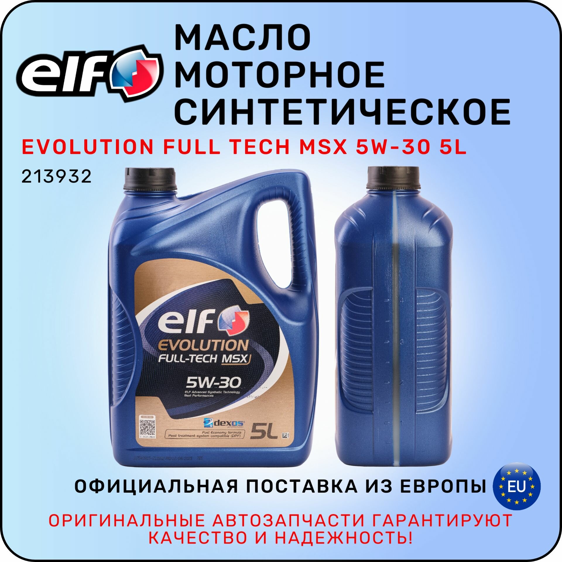 ELF 213931 Масо моторное синтетическое ELF EVOLUTION FULL-TECH MSX 5W-30 1 (194903) 213931