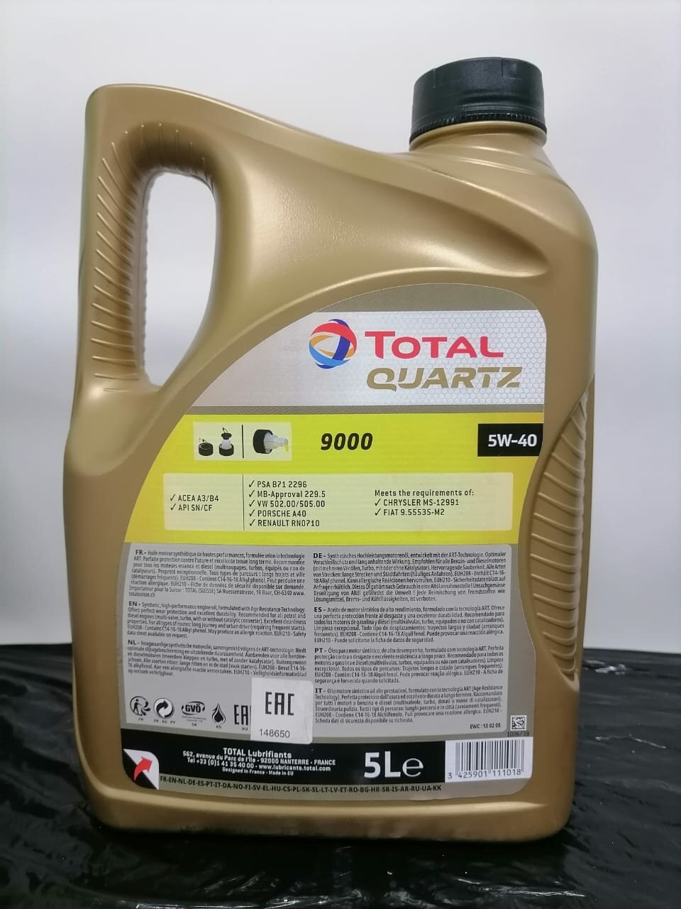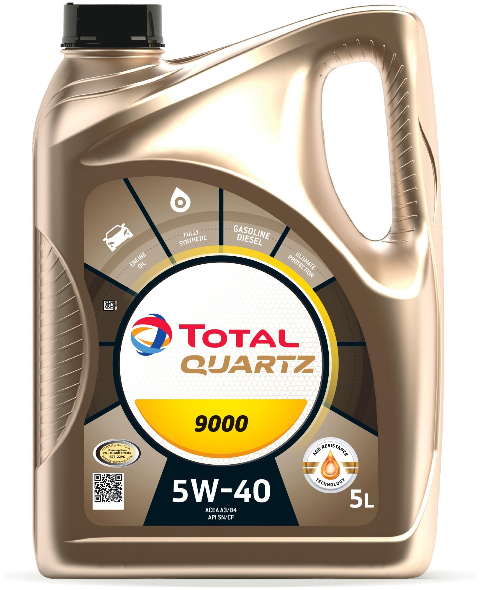 Синтетическое моторное масло TOTAL Quartz 9000 5W-40, 5 л (Европейский союз)