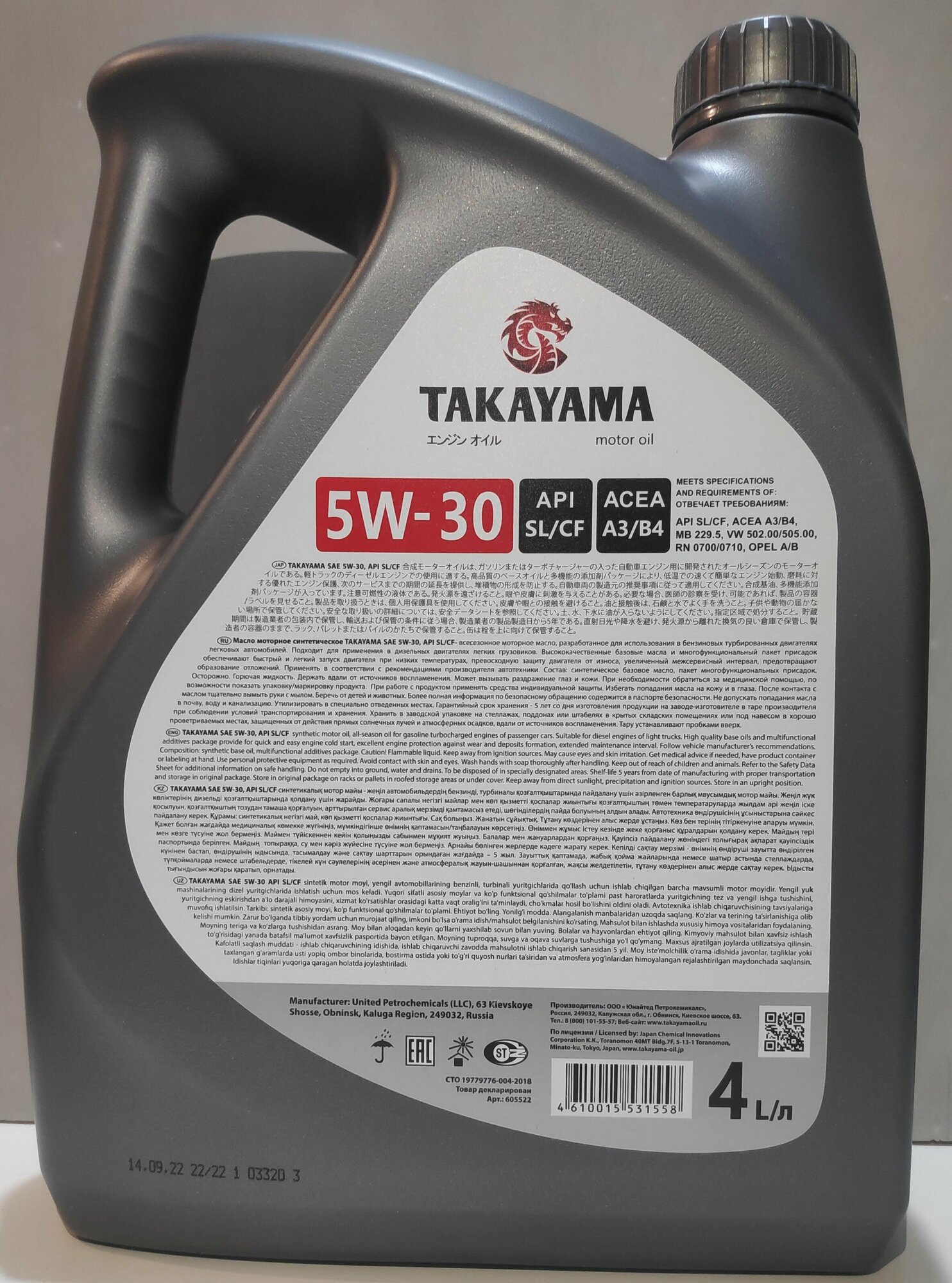 TAKAYAMA Рњр°Сѓр»Рѕ Рјрѕс‚Рѕсђрѕрѕрµ Сѓрёрѕс‚Рµс‚Рёс‡Рµсѓрєрѕрµ "Motor Oil 5W-30", Api Sl/Cf 4Р» (Рїр»Р°Сѓс‚Рёрє)