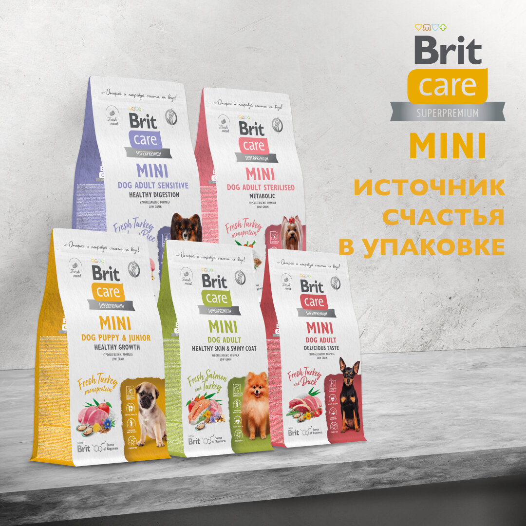 BRIT CARE Mini, Сухой корм с индейкой для щенков и молодых собак мини пород "Puppy&Junior. Healthy Growth",1.5кг