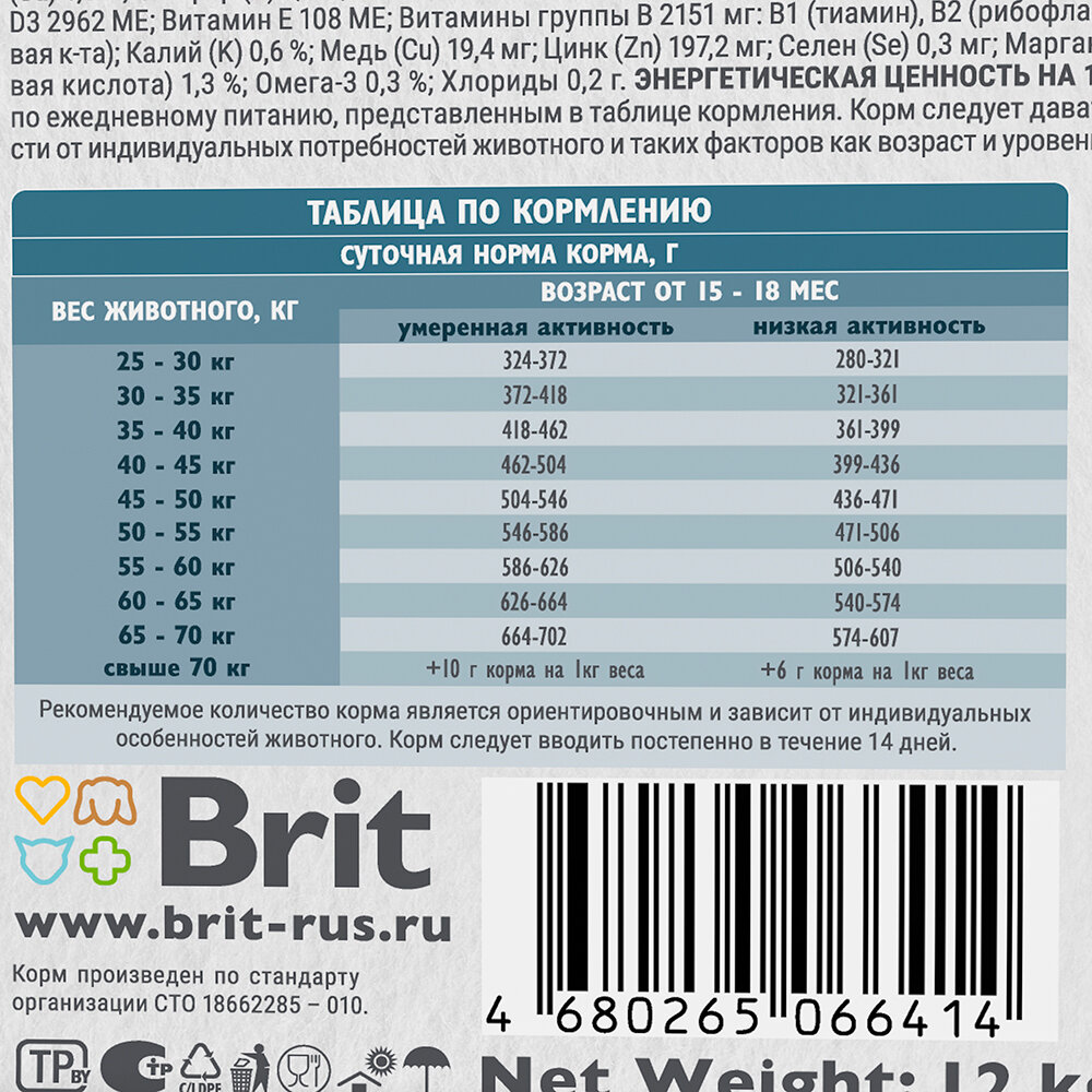 | Дозировка | - вес собаки 10 кг - 112 г - вес собаки 15 кг - 152 г - вес собаки 20 кг - 189 г - вес собаки 25 кг - 223 г |