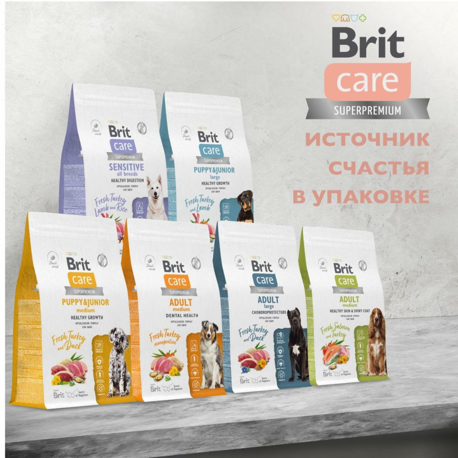 BRIT CARE Mini, Сухой корм с индейкой для щенков и молодых собак мини пород "Puppy&Junior. Healthy Growth",1.5кг
