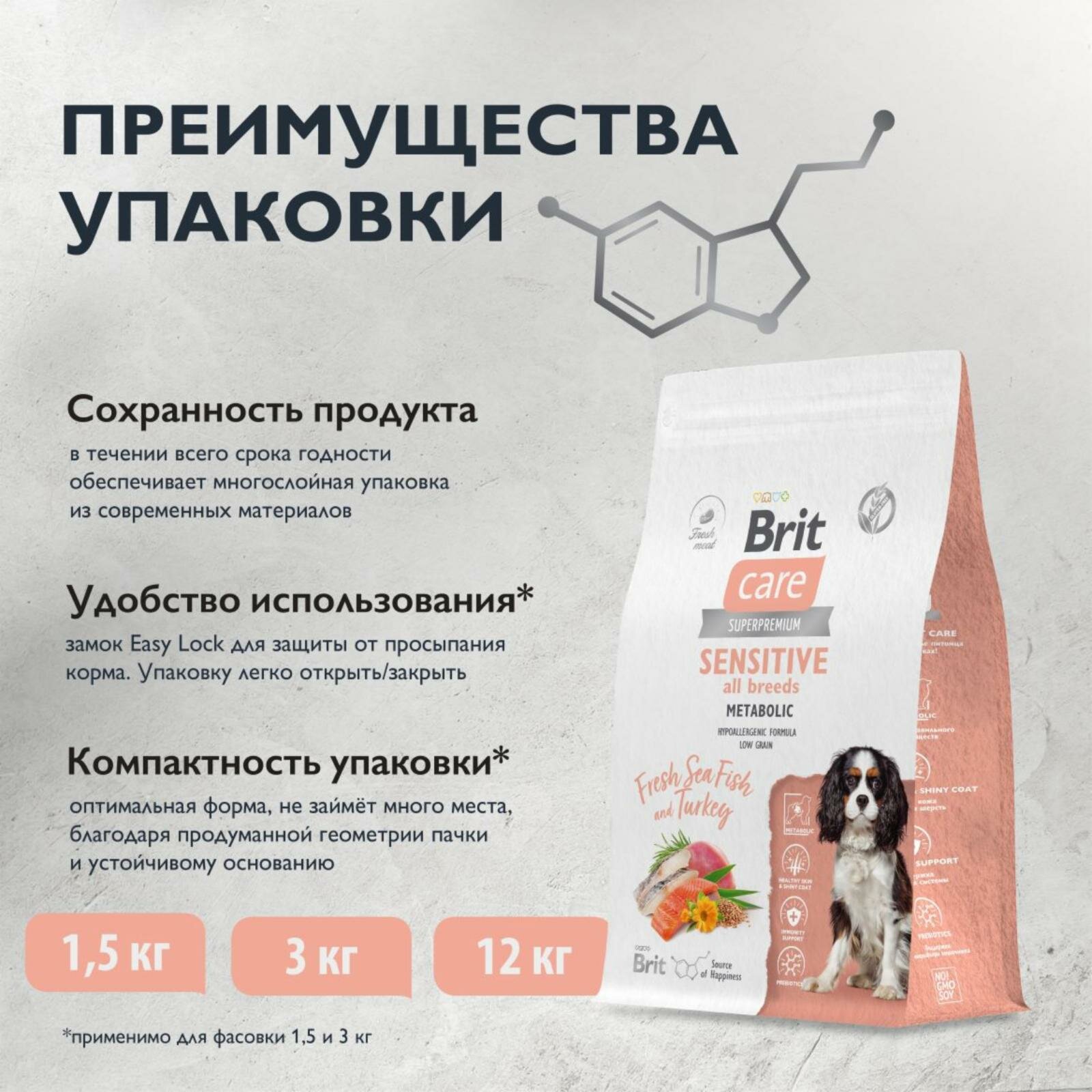 Сухой корм Brit Care Dog Adult Sensitive Metabolic с морской рыбой и индейкой для взрослых собак всех пород, Улучшенный обмен веществ 3кг