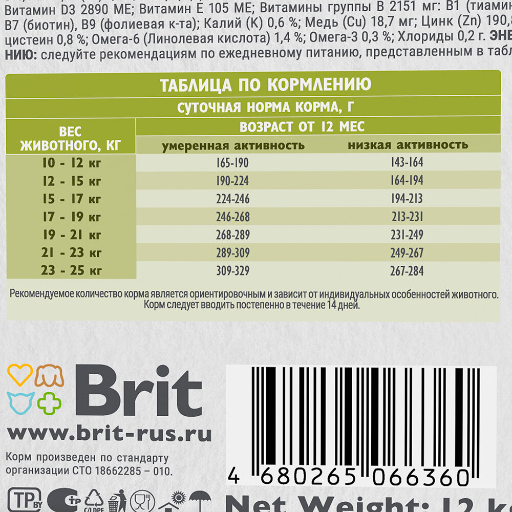 | Отзыв: | Специально беру корм для собак средних размеров, чтоб гранулы были не мелкие, т.к. наша собака не смотря на свой маленький размер не любит гонять во рту горох, так вот была не приятно удивлена - гранулы средним размеров 5-6 мм, как для чихов(( А так - не сильно уж он и вонючий, для того, чтоб собака привыкла к измененному (хотя планирую в дальнейшем поменять) смешала с остатками оригинального брита - есть за милую душу), (но она у нас и огурцы с удовольствием лопает, аппетит на зависть врагам) |