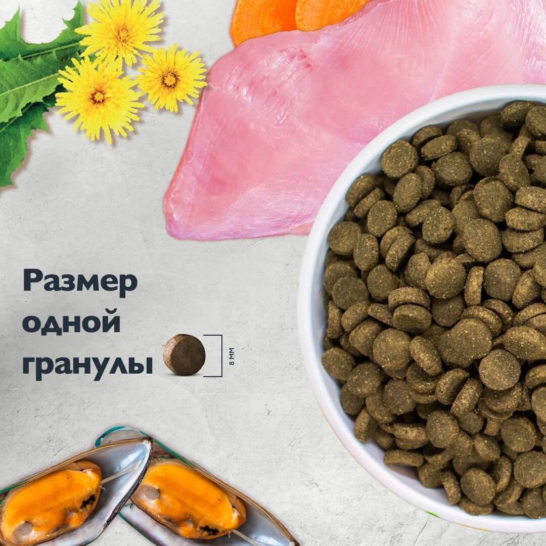 | Отзыв: | у меня три собаки, от мелкой в 2.5 кг и до 25 кг, все едят один корм, проблем не возникает. |