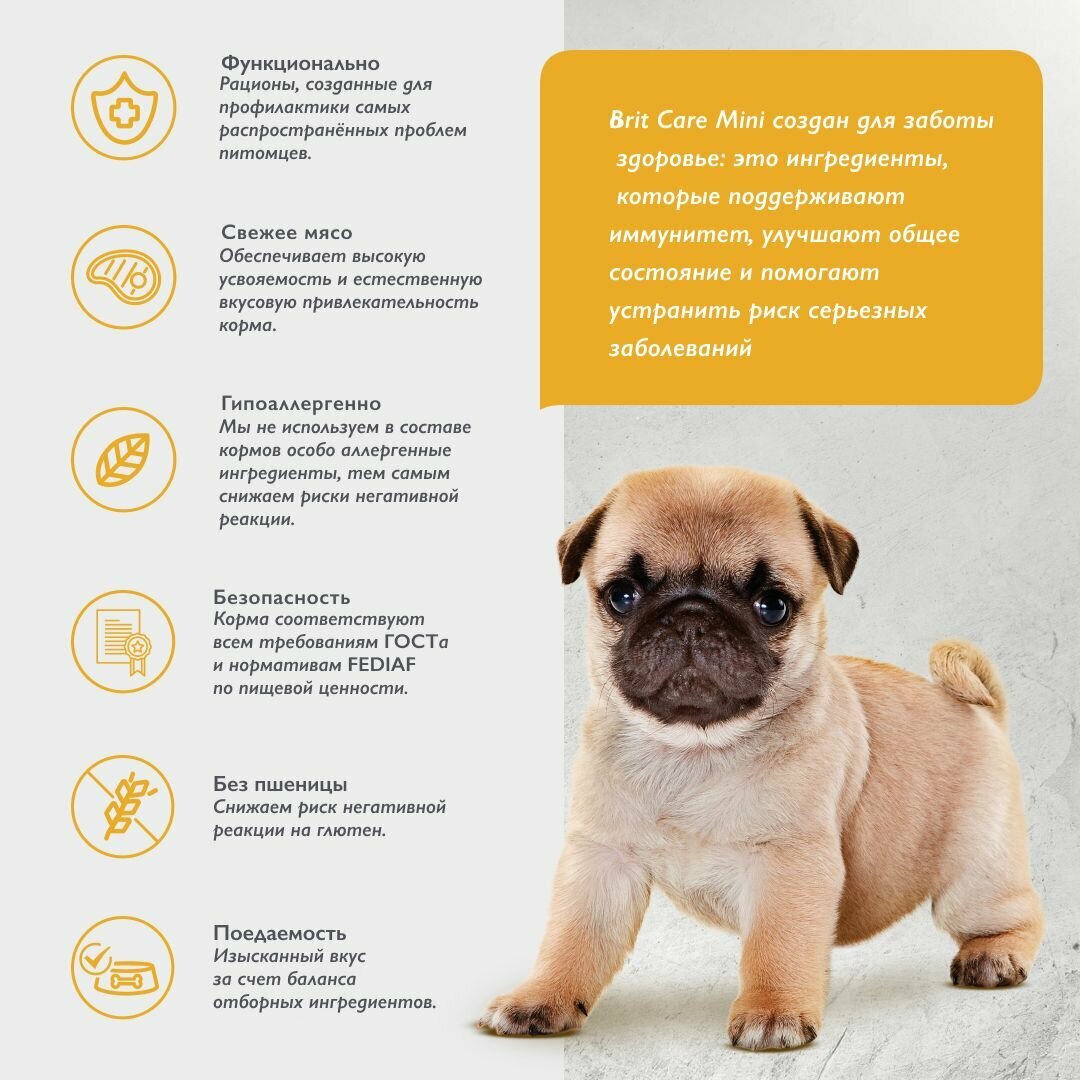 BRIT CARE Mini, Сухой корм с индейкой для щенков и молодых собак мини пород "Puppy&Junior. Healthy Growth",1.5кг