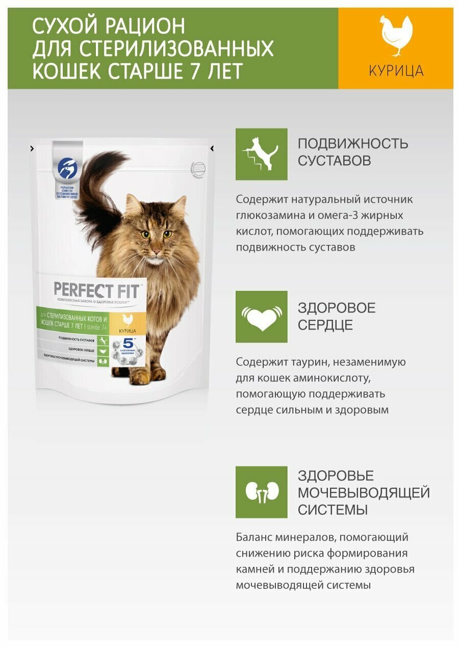 Perfect Fit Сухой корм для стерилизованных котов и кошек старше 7 лет с курицей (PERFECT FIT Senior_7+ Ck 10*650g) 10162216 | STERILE 7+ 0,65 кг 25234 (2 шт)