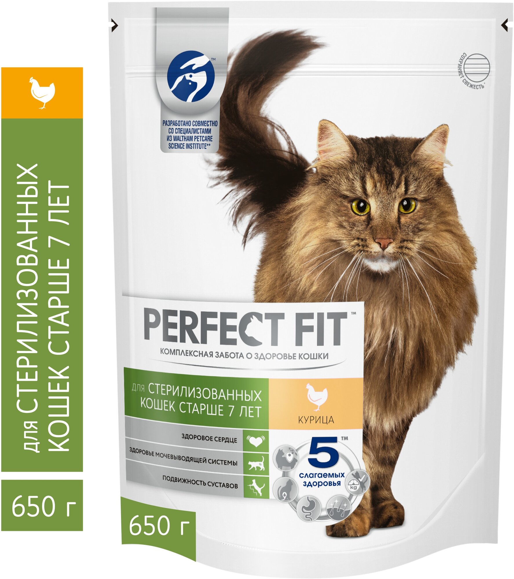 Корм сухой для пожилых кошек старше 7 лет PERFECT FIT с курицей, 650г