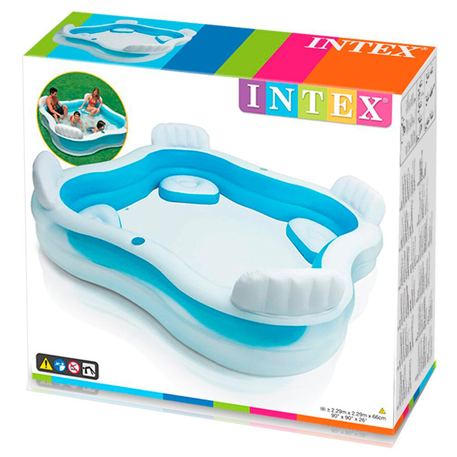 Купить Надувной детский бассейн INTEX Семейный 229х229х56 см (с сиденьями), артикул 56475