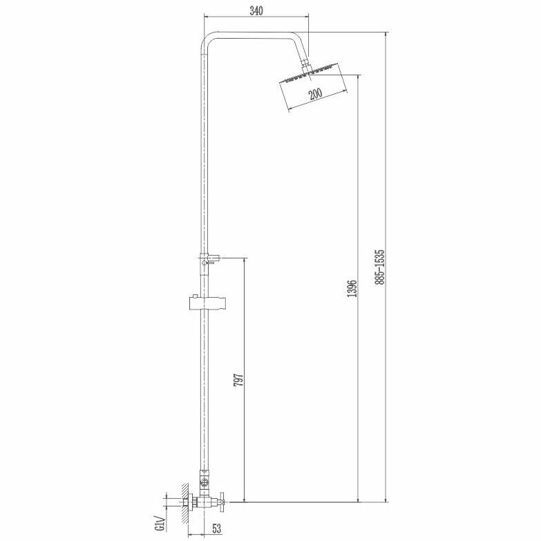 | Комплектация | Смеситель двухвентильный / душевая стойка / верхний душ / душевая лейка / Душевой шланг 150 см / эксцентрики / отражатели |